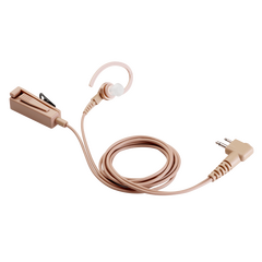 Earbud with clip microphone and PTT, two-wire, surveillance style. (not recommended for PL codes above 225 Hz)