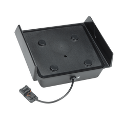 Black desktop microphone makes transmissions easy when the mobile radio is being used from a desktop because the microphone and push-to-talk button are larger. Microphone can help expedite transmissions because the user doesn't have to keep picking up the mobile microphone. (MC1000 - an...