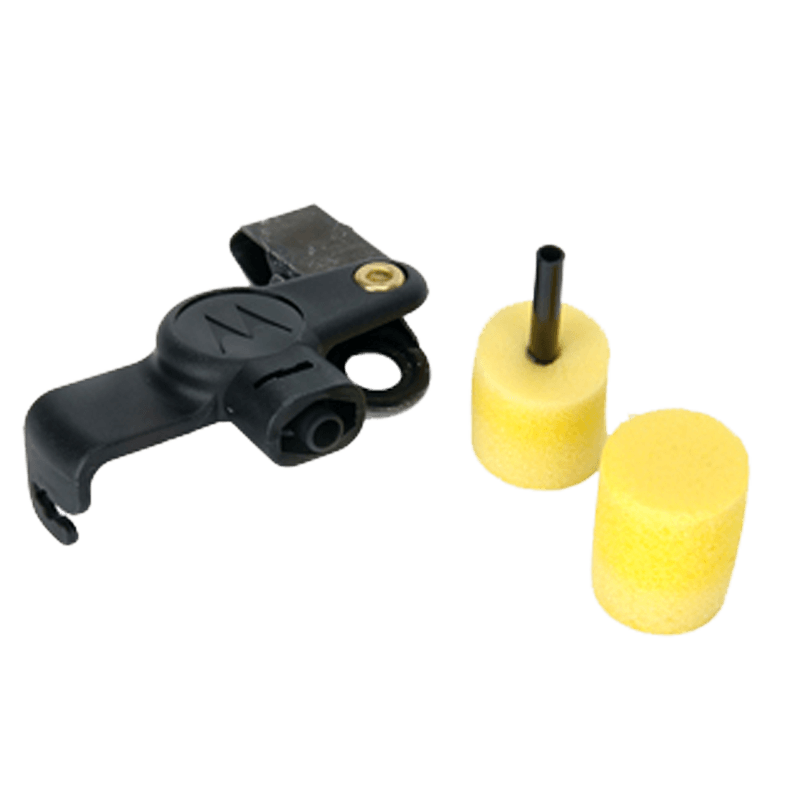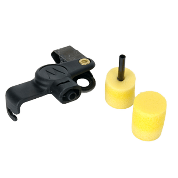 Quick disconnect noise kits provide extra comfort and/or noise protection for users wearing surveillance accessories. Lightweight, translucent tube attaches to Motorola surveillance accessories to provide flexibility and comfort. The quick disconnect qdapter allows users, especially those in multiple shift operations, to easily remove or alternate acoustic tubes. Clothing clip prevents accessory from being pulled from the ear due to body movement or head rotation. This black extreme noise kit includes 2 foam earplugs for high-noise environments and can be used with clear comfortable earpieces, Noise reduction = 24dB. For optimal performance, extra loud earphones are recommended.