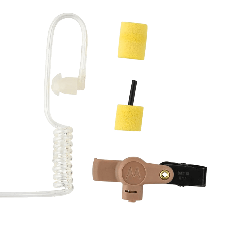 Lightweight, translucent tube attaches to Motorola surveillance accessories to provide flexibility and comfort, which now includes a new quick disconnect adapter. The Quick Disconnect Adapter allows users, especially those in multiple shift operations, to easily remove or alternate acoustic tubes. Clothing clip prevents accessory from being pulled from the ear due to body movement or head rotation. For optimal performance, Extra Loud Earphones are recommended.